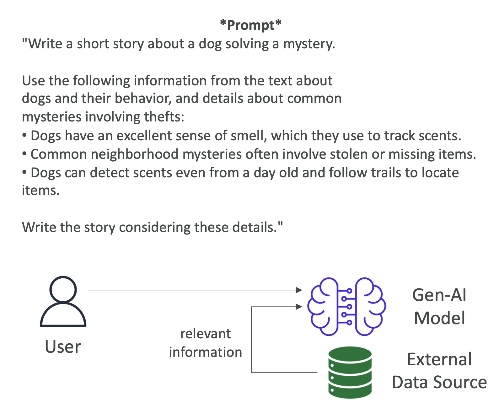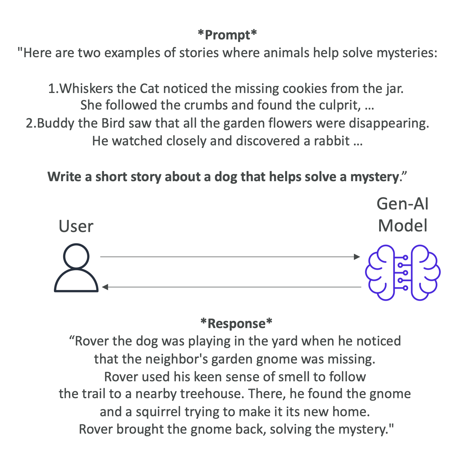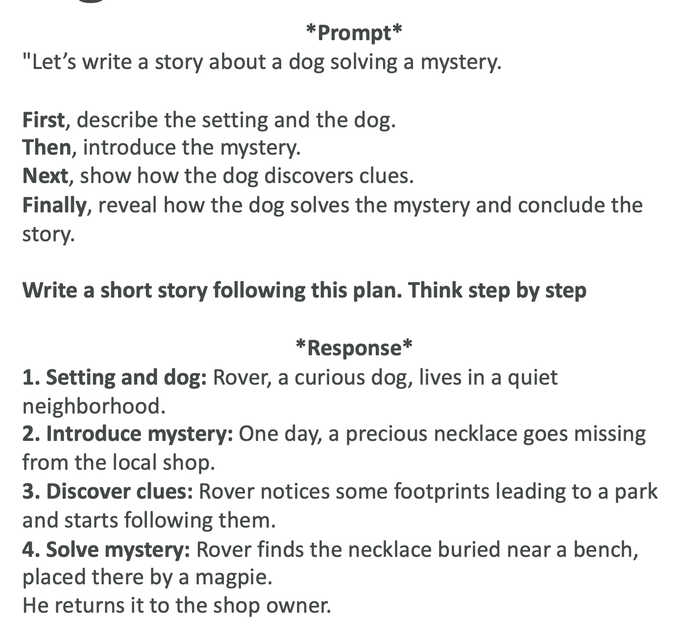 - 프롬프트: “개가 미스터리를 해결하는 짧은 이야기를 써줘.”