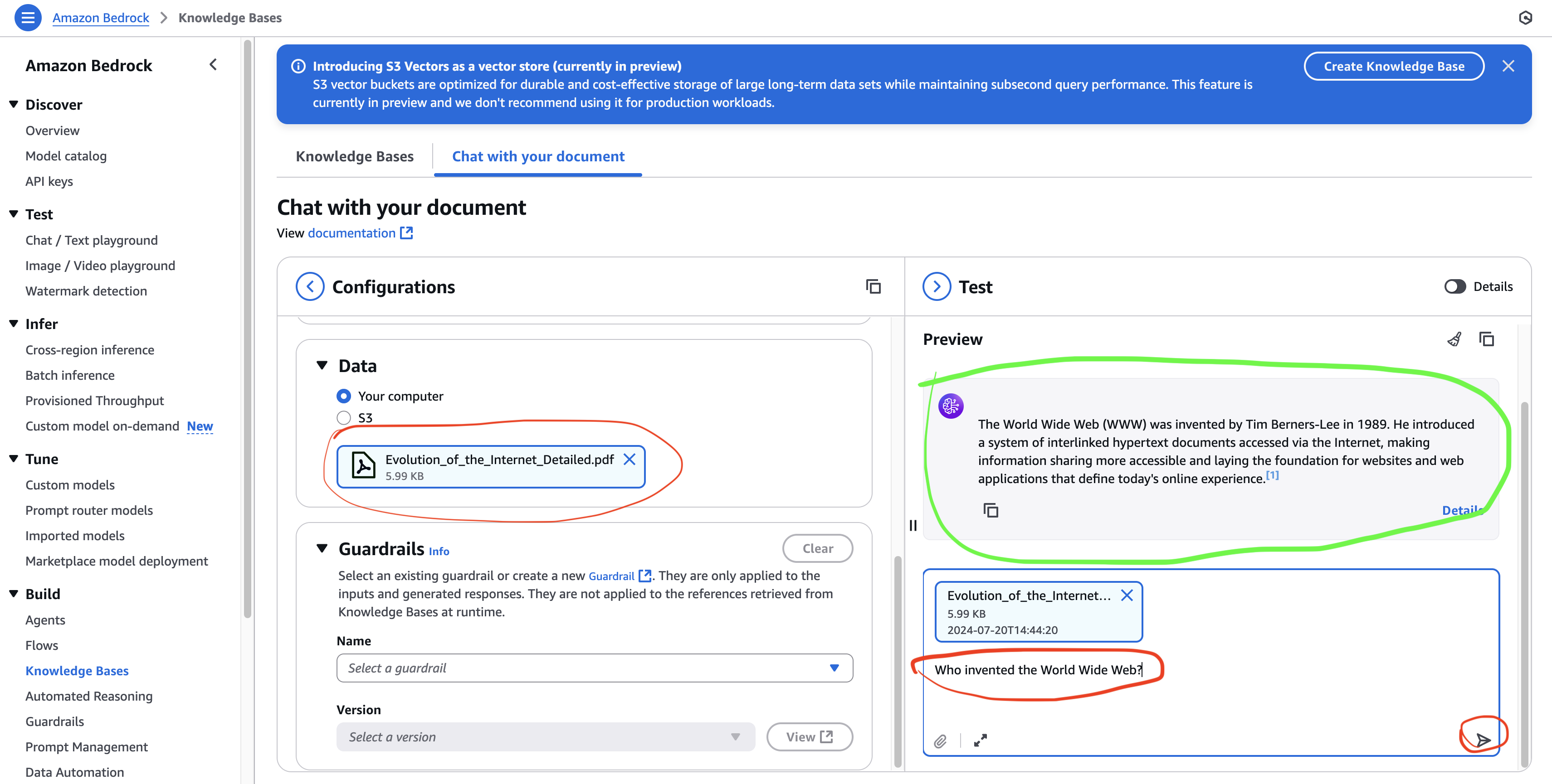 - 벡터 DB 옵션: OpenSearch, Aurora, Neptune, S3 Vectors