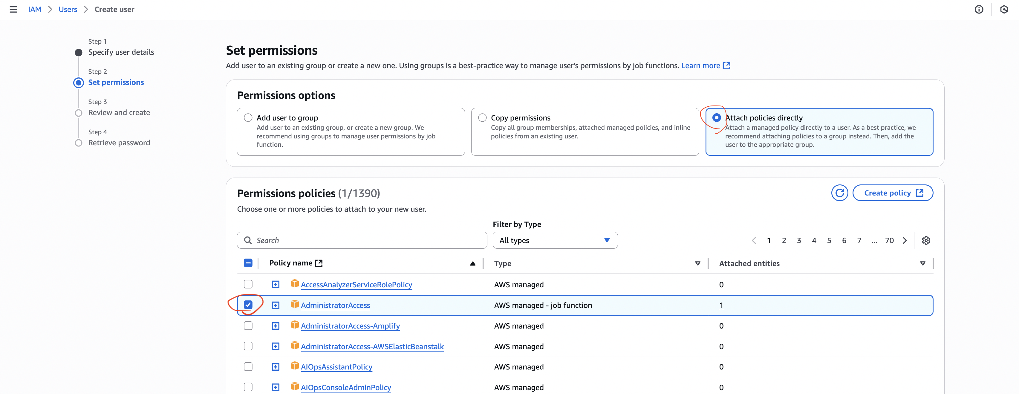 - IAM 사용자에게 AdministratorAccess 정책 부여