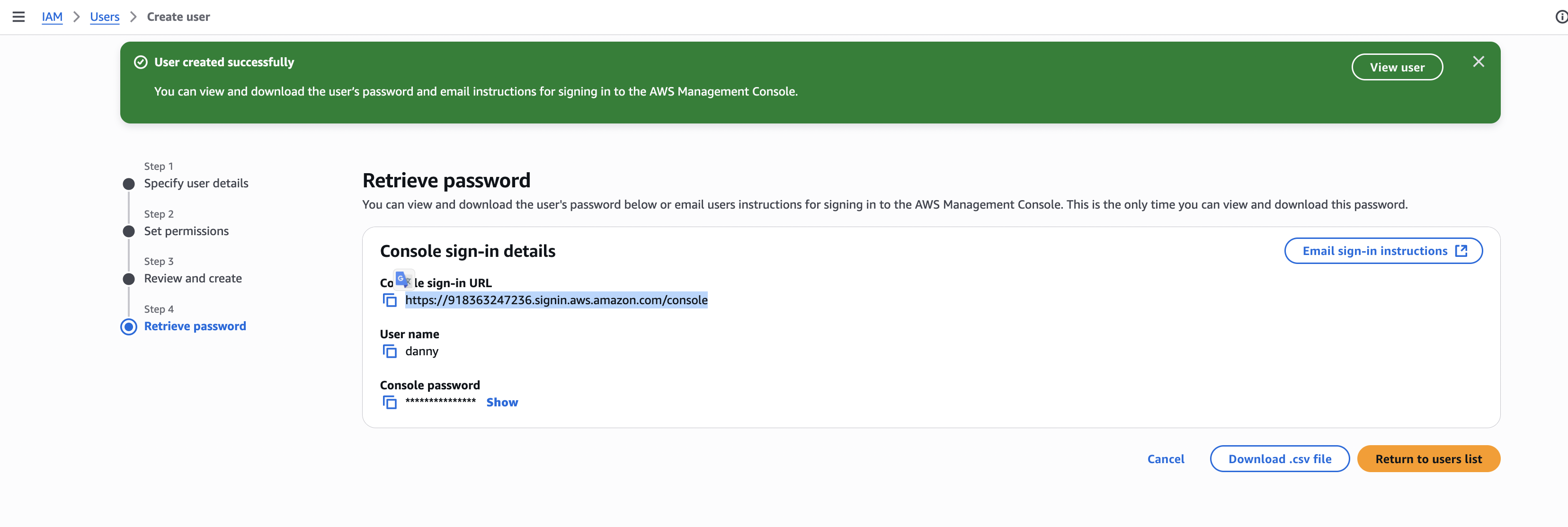 - 로그인 URL / 계정 정보 저장 후 IAM 사용자로 로그인