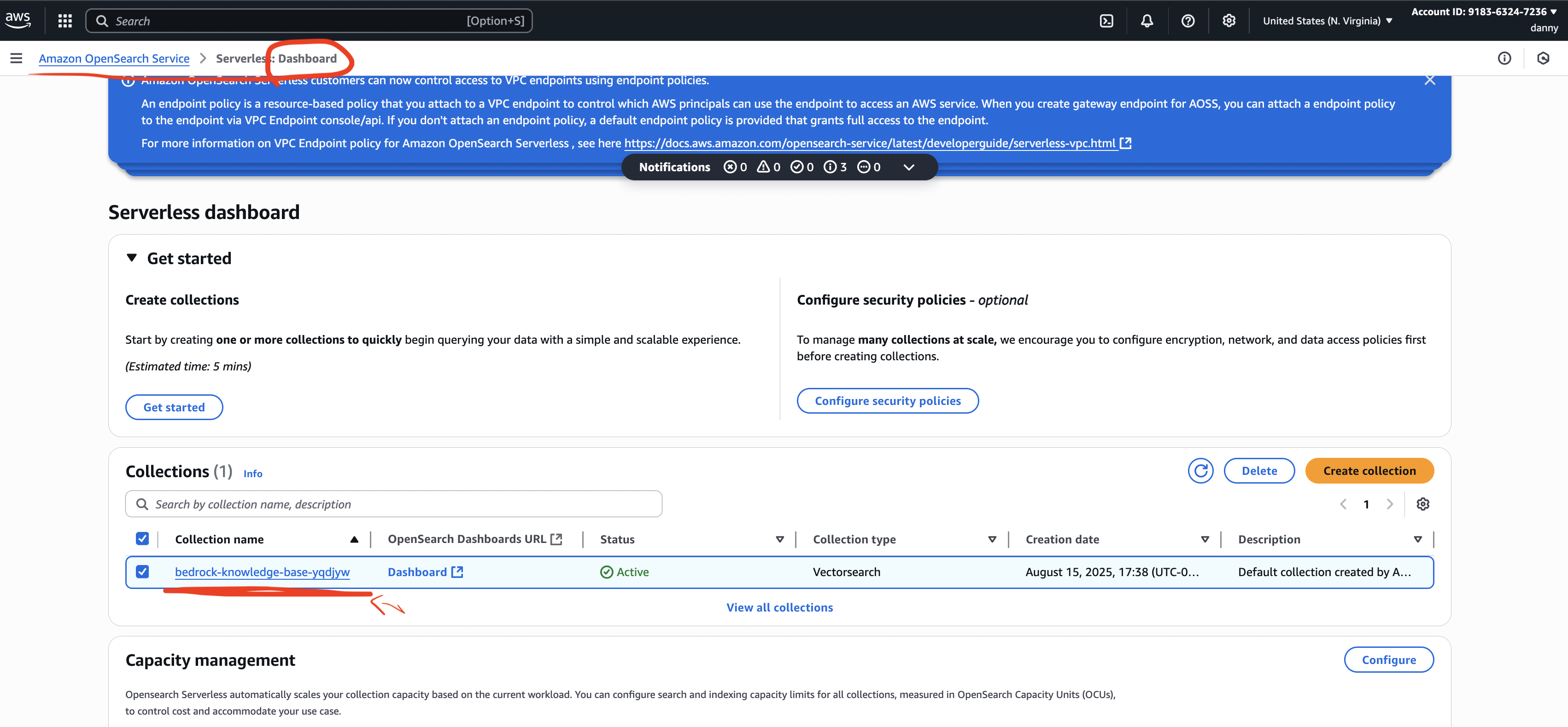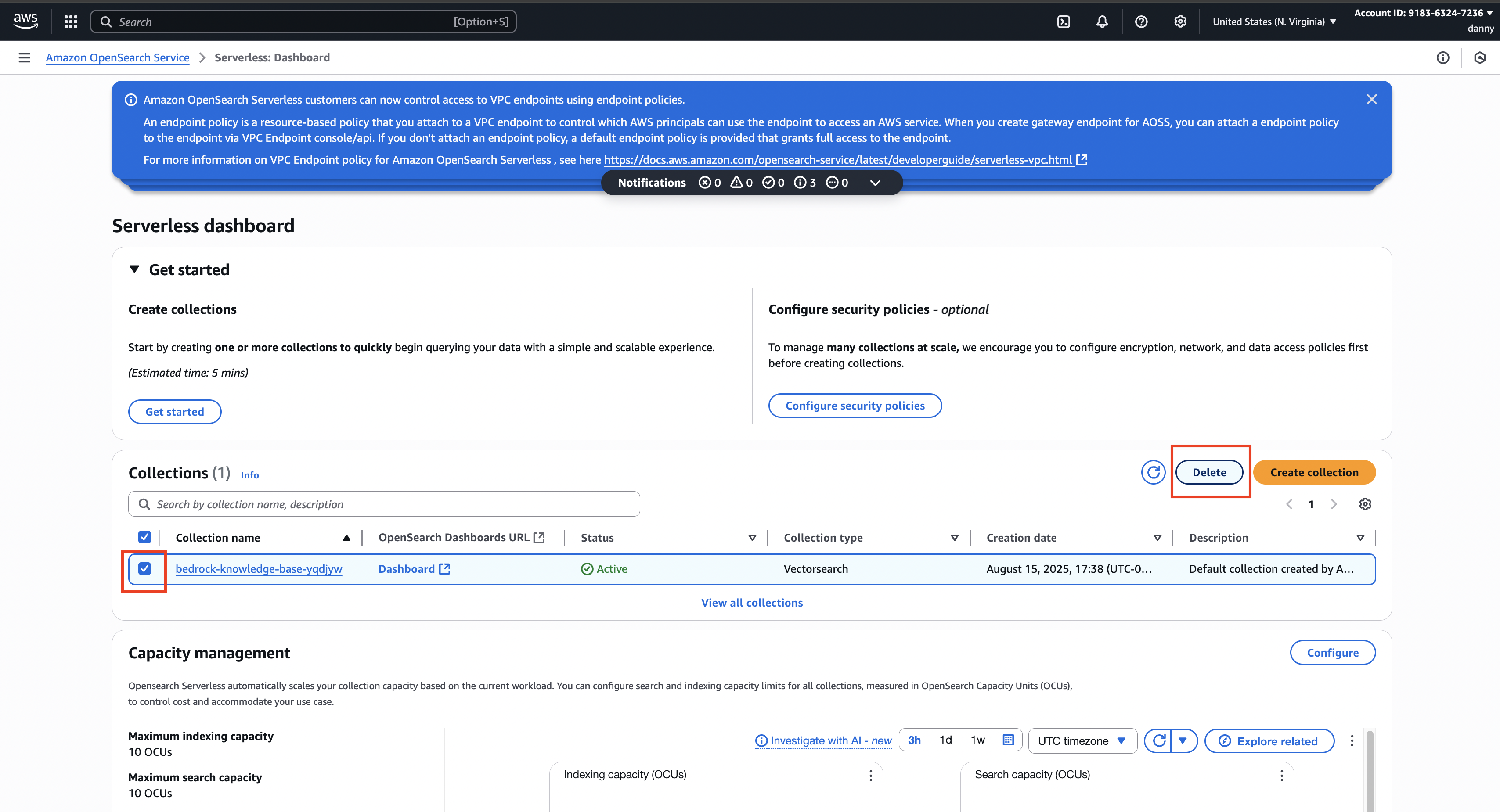 ⚠️ 비용 주의: OpenSearch Serverless는 최소 약 \$172/월 발생 → 테스트 후 반드시 삭제 필요!