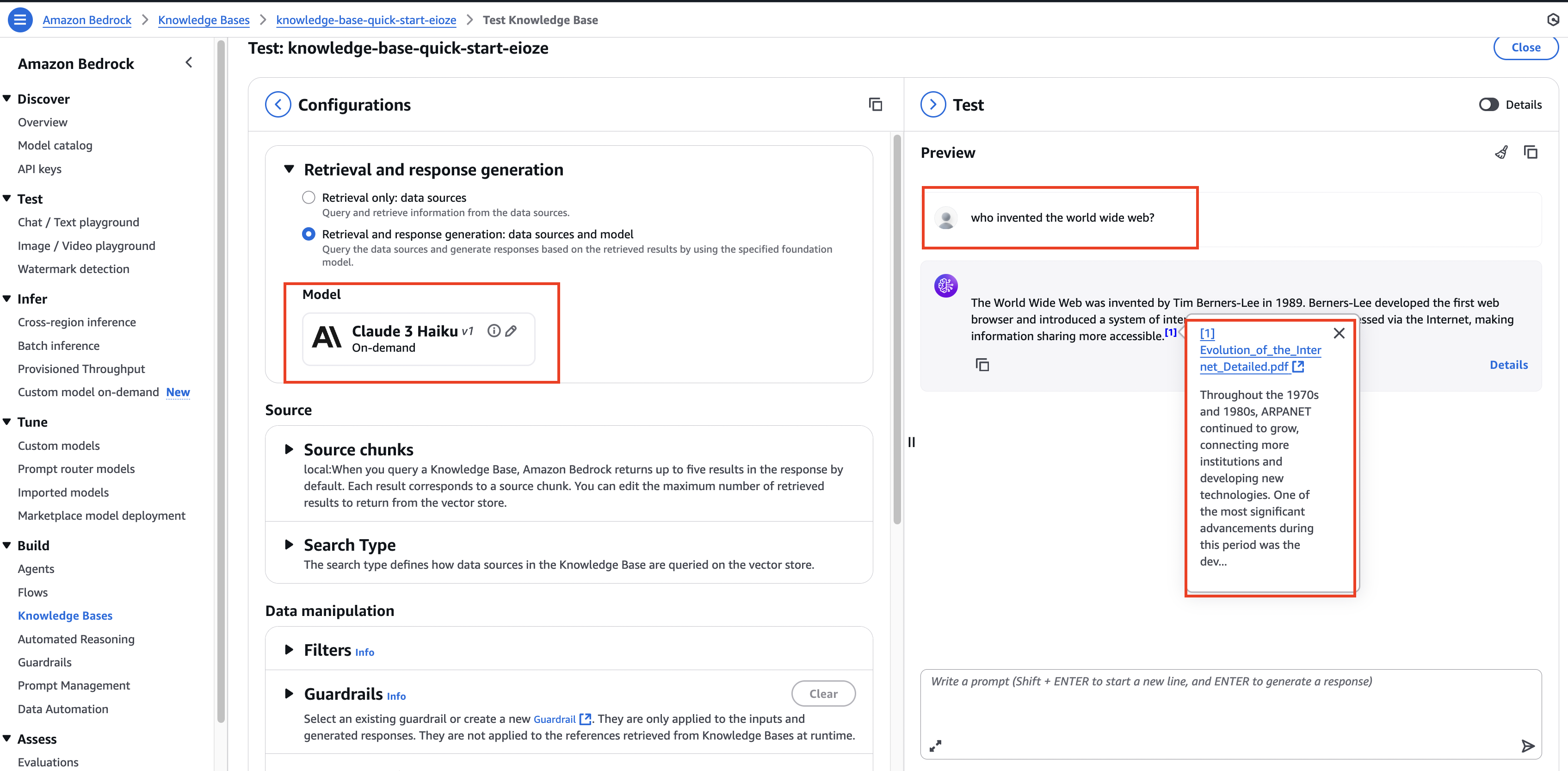 "World Wide Web을 만든 사람은 누구야?") - Bedrock 내부 처리: