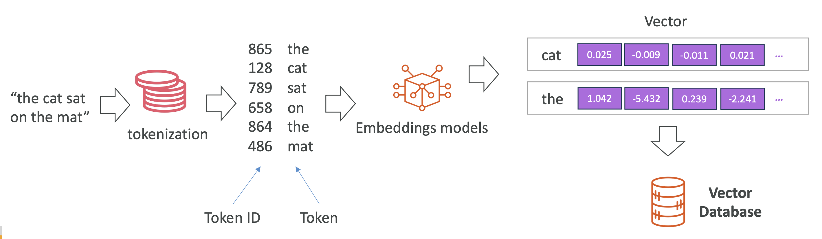 - 임베딩 모델이 각 토큰을 다차원 벡터로 변환